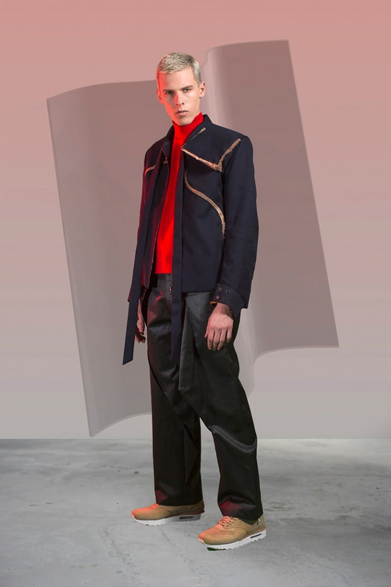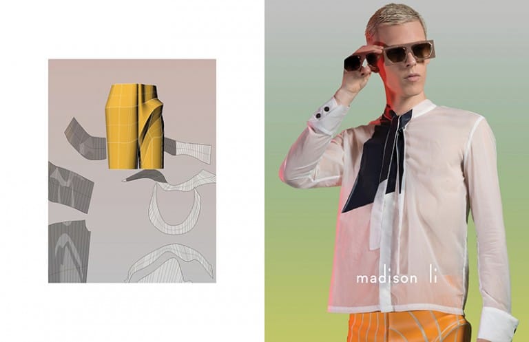 “Madison Li recently graduated BFA Fashion Design at Parsons the New School for Design as a Designer of the Year 2016 Menswear finalist. In his thesis collection he wanted to prompt our society to enter an era that celebrates and embraces complexity and multifacetedness instead of compartmentalizing and dumbing things down. To visualize the statement he chose Cubist art as a visual reference, and created 3D sketches that can be turned into flat patterns in Rhino, a 3D modeling program often used in architecture and product design.