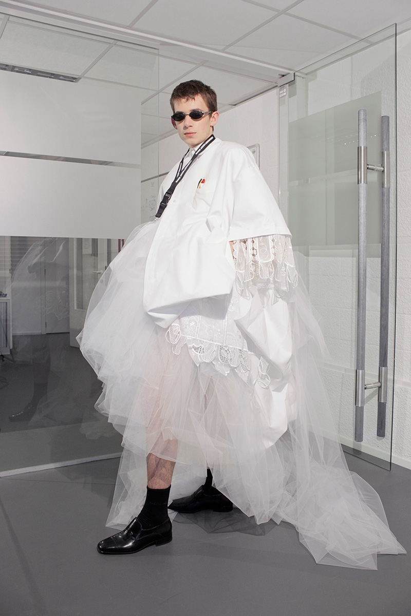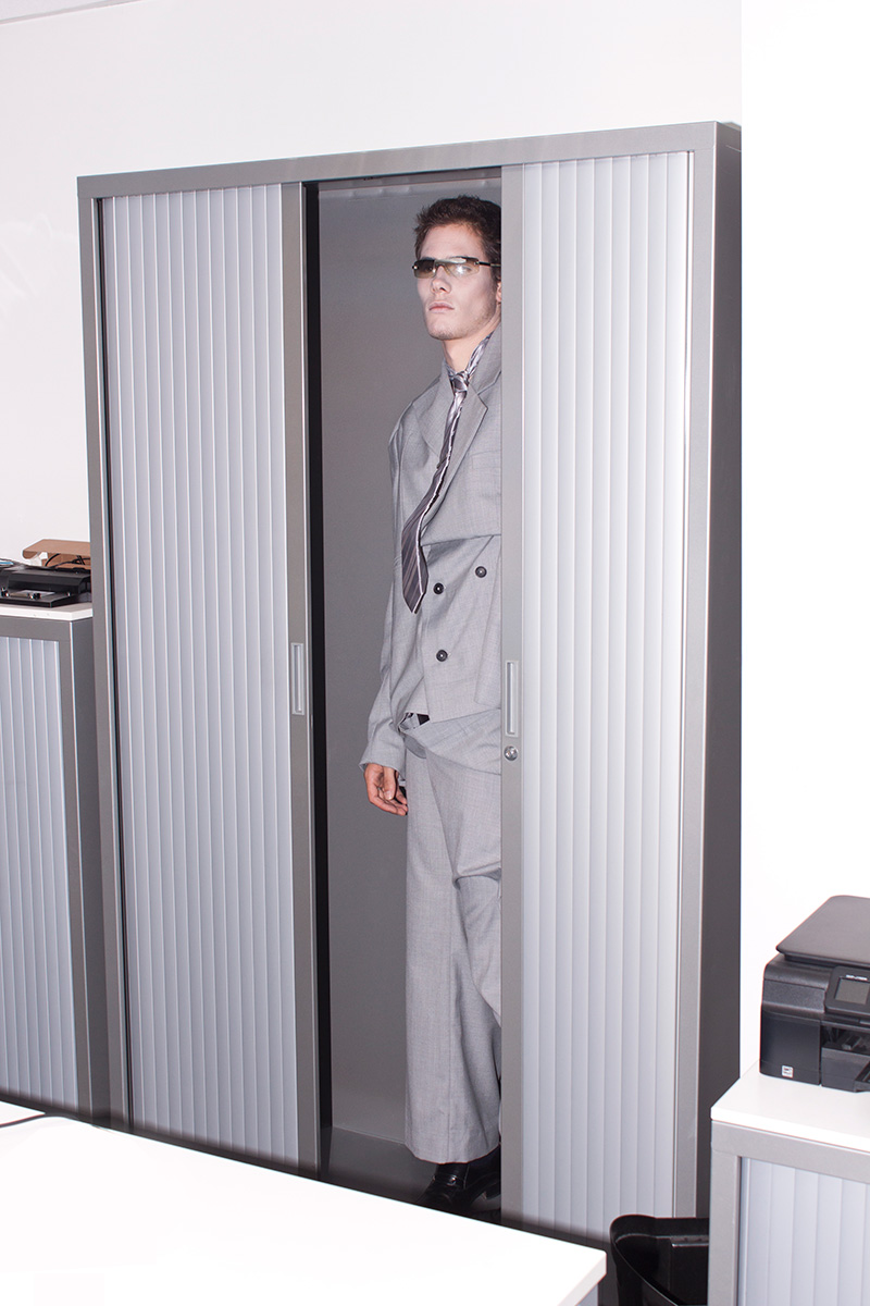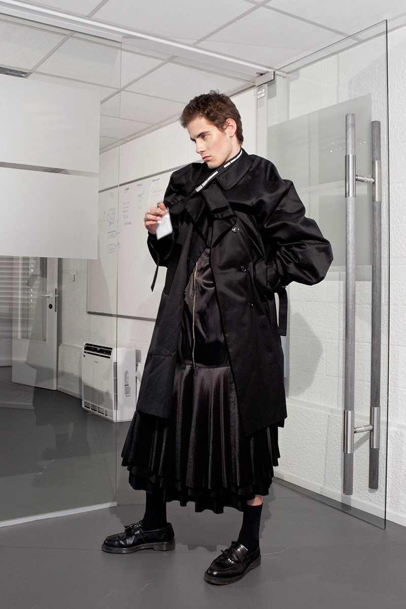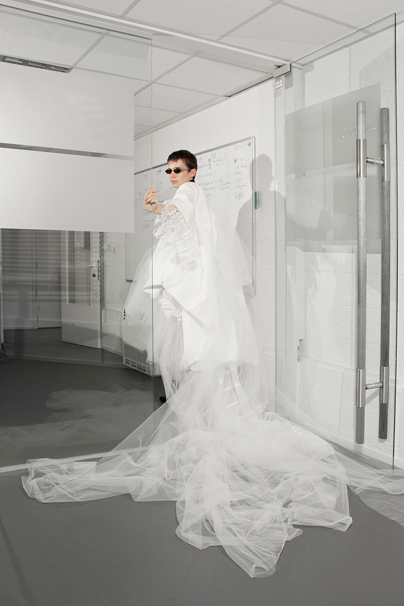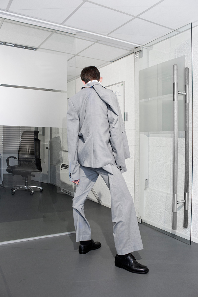 “Grey Area” is her last collection in which she challenges the strict and rigid archetypes of the businessman outfit by questioning the formatted “tie suit” silhouette, the serial side and the uniformity of the garment in the business world. By disrupting the standards of this silhouette, she tries to break the codes of male supremacy.