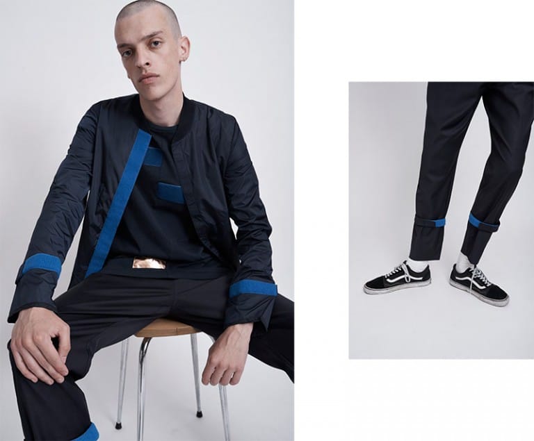 The collection breathes a luxurious new rebellion into modern style. Mixing street culture, high end luxury and traditional tailoring techniques with exciting new and old textiles.” – FY Magazine.es
