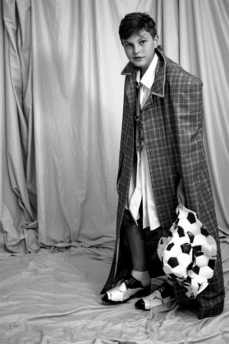 “Andrea Antonelli, a graduated designer from Polimoda, presents his “QUARTOSTATO” collection. The lookbook features Margherita, Andrea, and Diego, portrayed as a family, by Marta Gasperini.” – FY Magazine.es