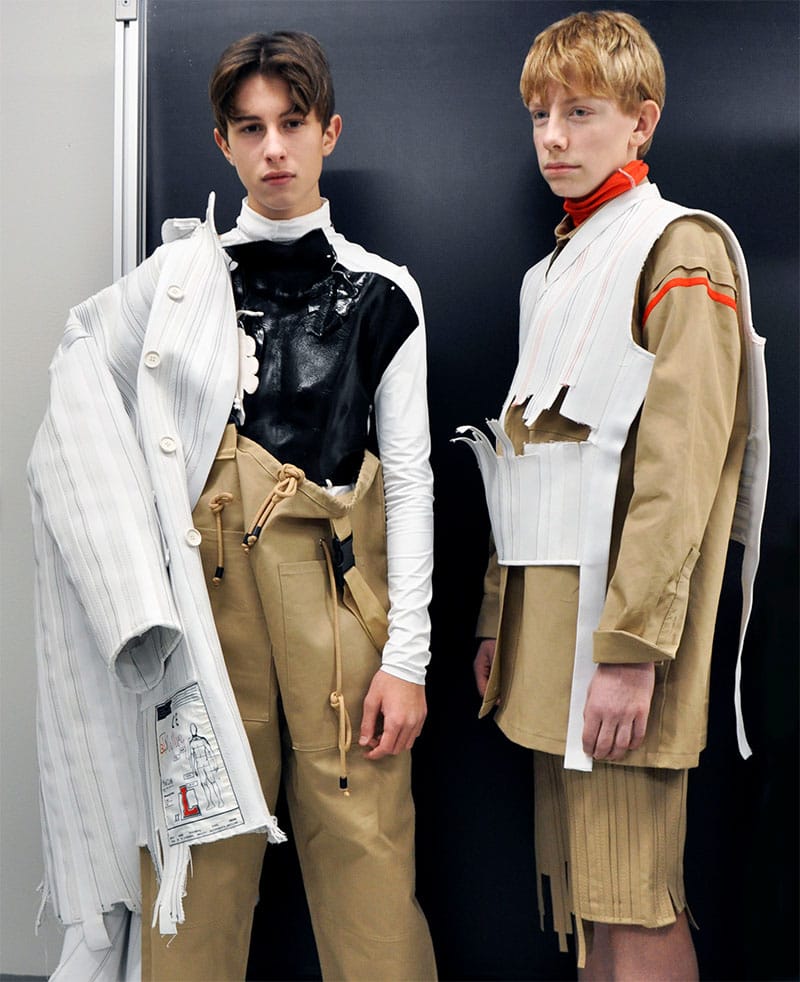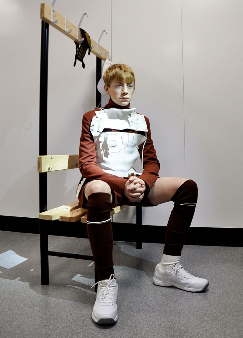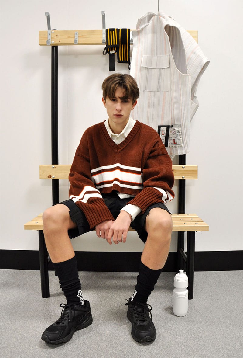 “Sofia Mollberg is a fashion student at Polimoda. Her graduation collection, titled “MENSCH”, was inspired by TV show Freaks and Geeks, and by her time spent in the U.S. where she saw young people at school struggling to fit in. She started to question normality and looked into the stereotypes of masculinity and menswear to change idealism to individuality.