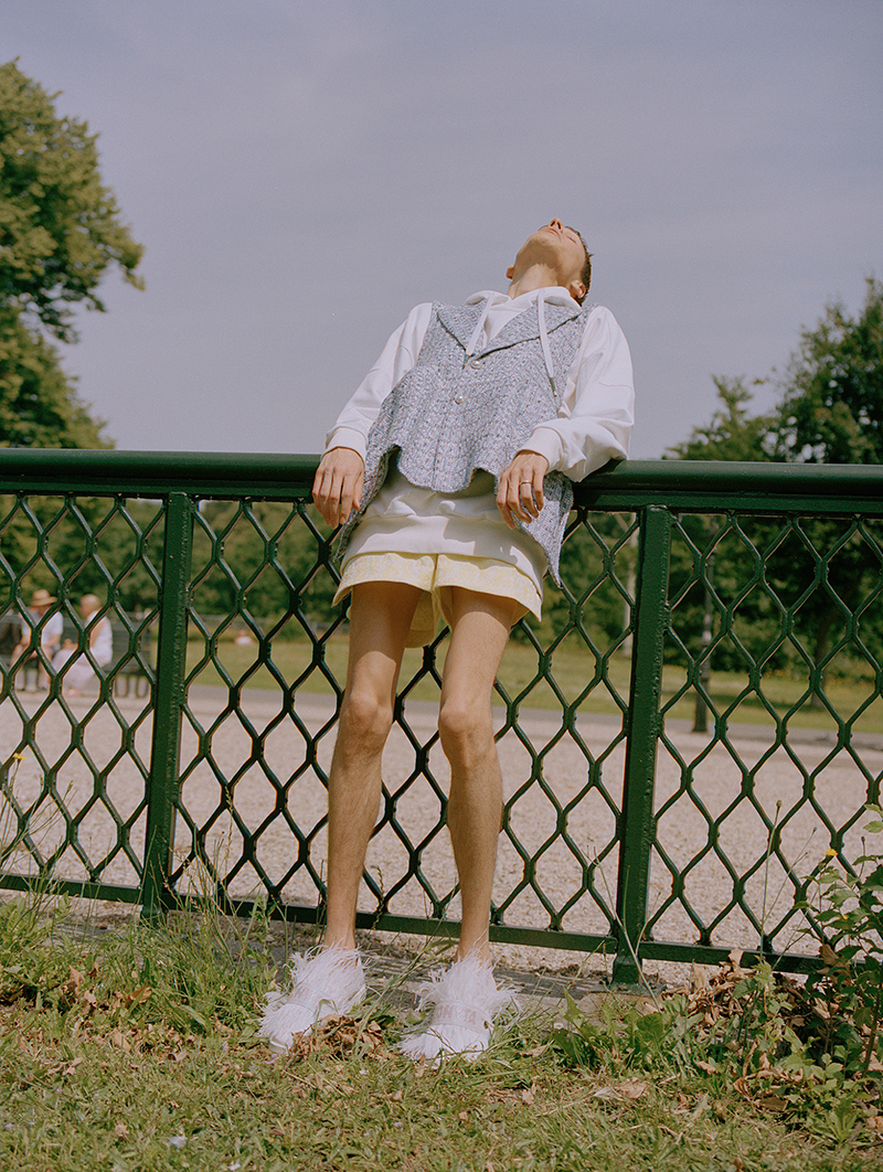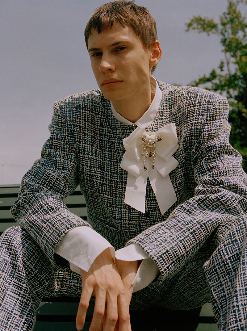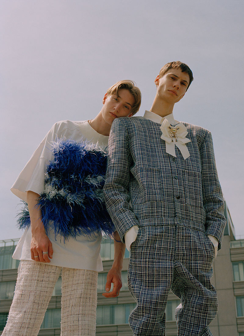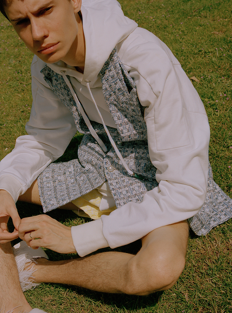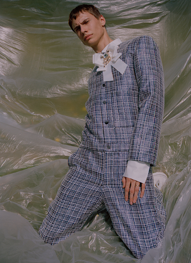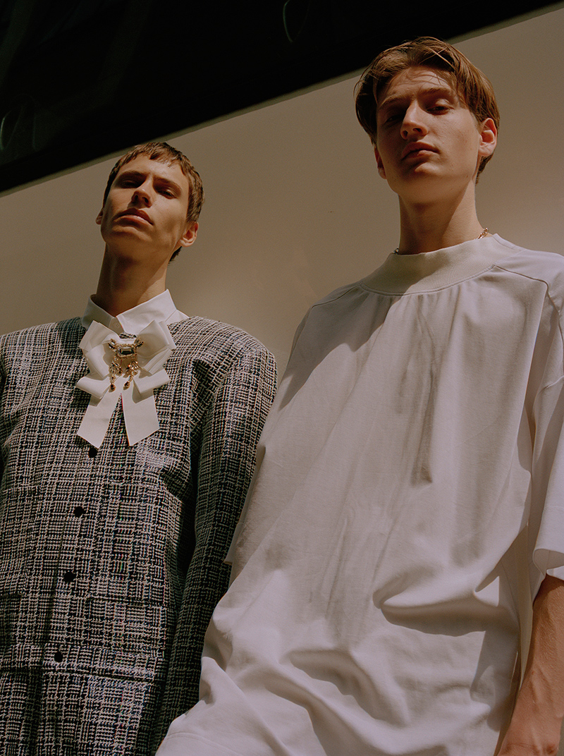 “Teenage boys splurging $300 on a branded T-shirt for the gram has become the norm and the image of luxury has shifted to accommodate this new demographic. I want to celebrate this phenomenon by combining both streetwear and classic high fashion elements for a modern menswear feel.” – said the designer