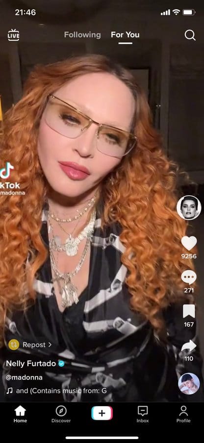 “Nelly Furtado is back. The “Promiscuous” singer took to TikTok to share a video of herself in the recording studio, tagging Madonna in the caption, possibly hinting a future collab between the two.