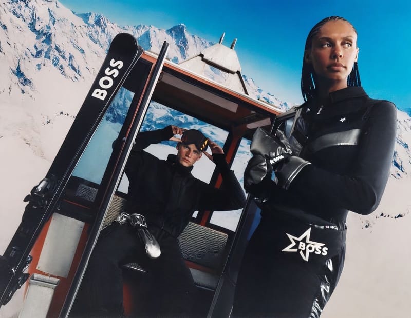 INYIM Media Fashion Campaign: Models Timo Pan & Ronja Ber Shot By Javier Castán For BOSS X Perfect Moment Winter 2023-24 Ski Collection.