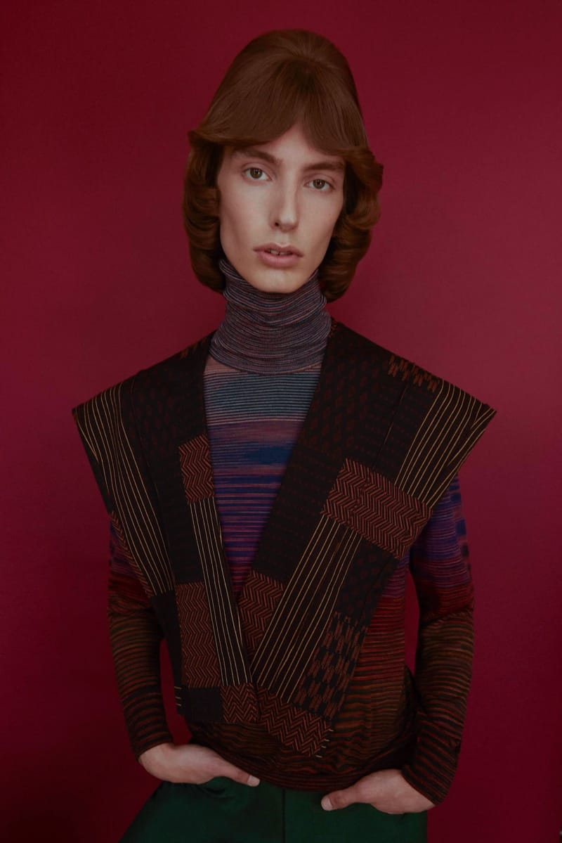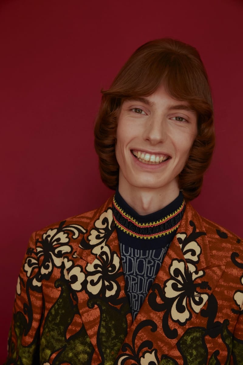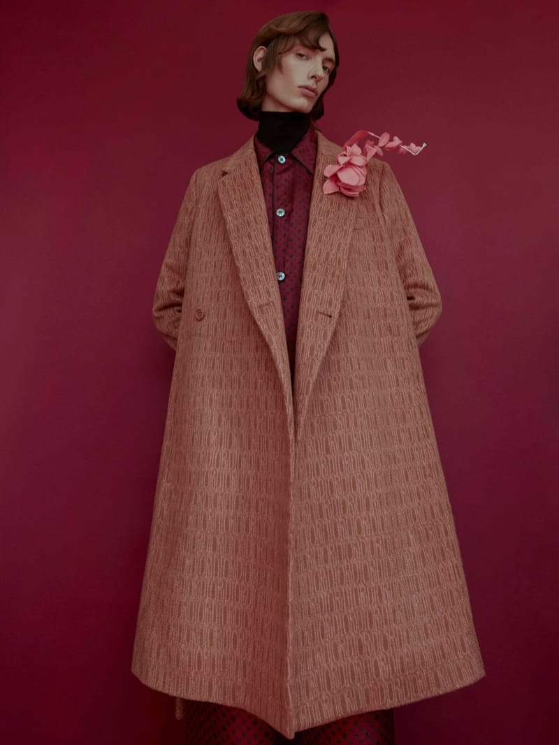 “He takes up the spotlight where he dons retro-inspired hairstyles by Brady Lea. Meanwhile, Carla Guler photographs Casper for the occasion. Front and center, Casper poses a crimson-colored backdrop. Guler lights Casper in a manner to highlight his cheekbones as he dabbles in dandy styles. Hannah Beck outfits him in designer fashions, curating a selection that includes standouts, such as a Dior Men coat, Gucci suit jacket, and J.W. Anderson dress.”