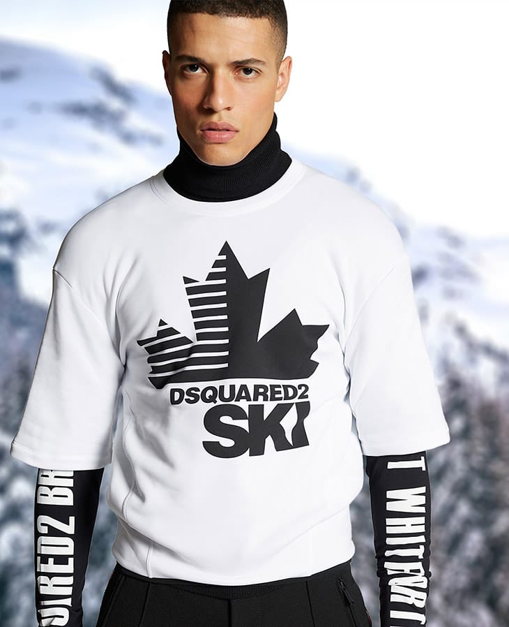 “All the way up! There is no mountain high enough the newest Dsquared2 Ski Collection won’t conquer. The different pieces combine performance and fashion with modern graphics and classic retro elements. The mix adds an exciting twist and feel to the D2 Ski Collection.” – from Dsquared2