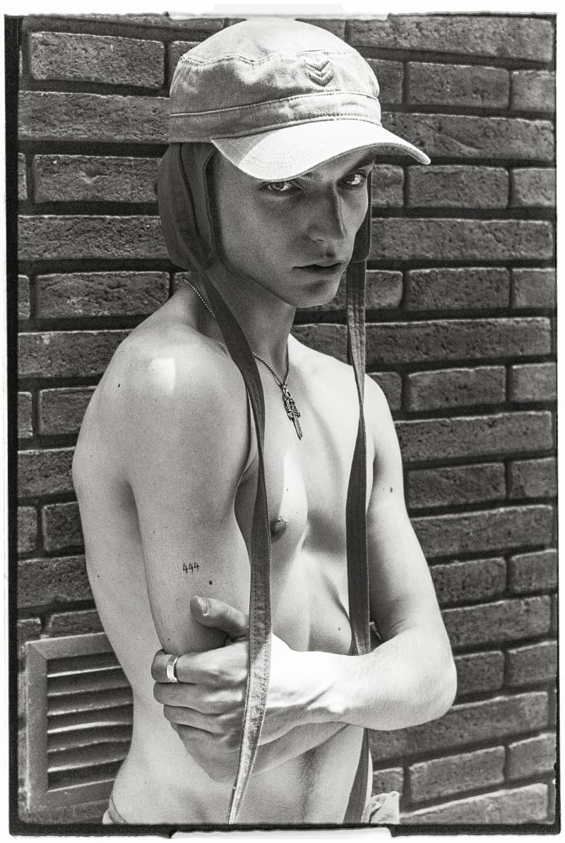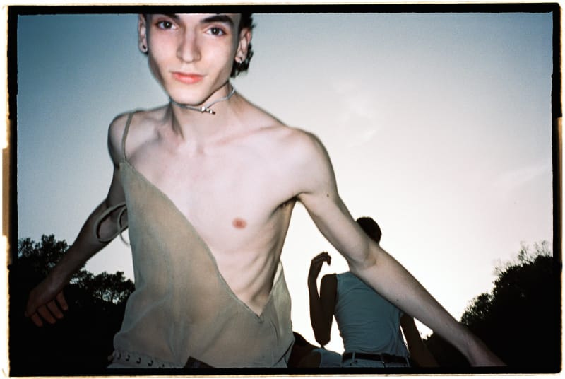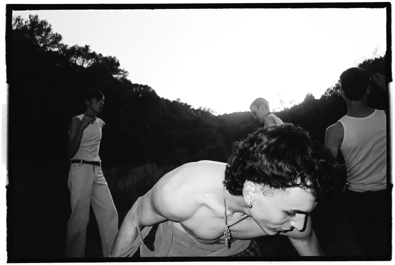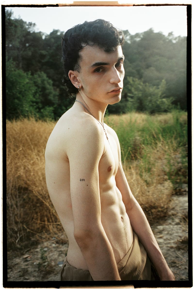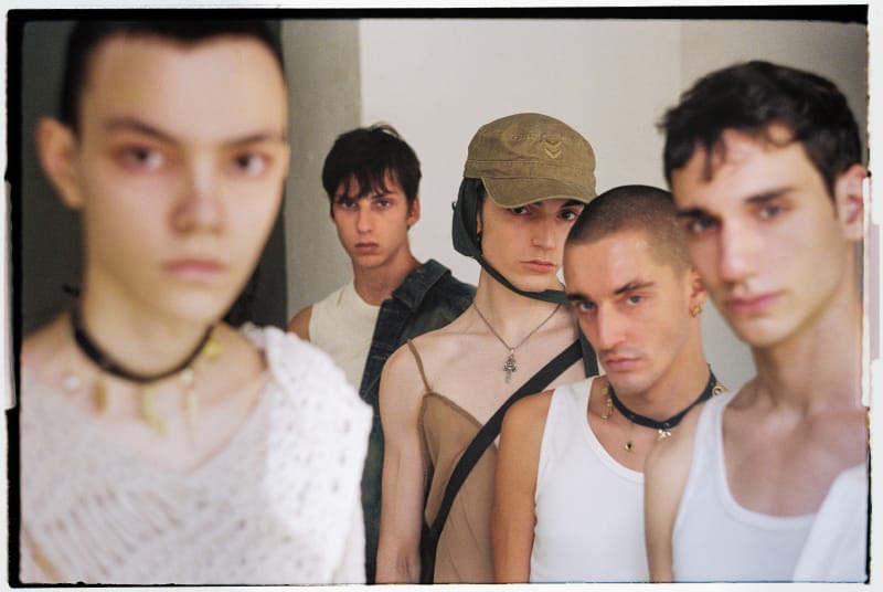 “The menswear collection explores the lives of a group of teenage boys that decide to start living on their own as a community, in order to protest the way adults around them are harming the planet. It includes four looks built with eleven different garments.