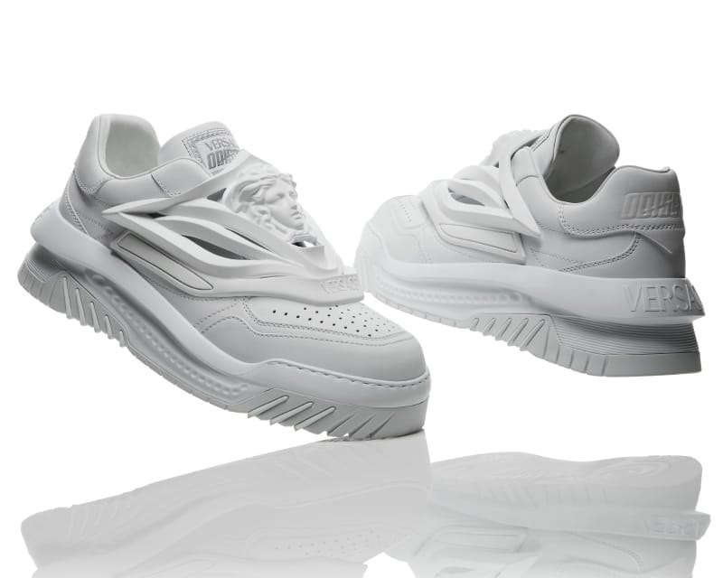 “Odissea has landed—a new Versace sneaker style inspired in its architectural shape by celestial travel and the stars, in a distinctly positive take on futuristic design and fashion.