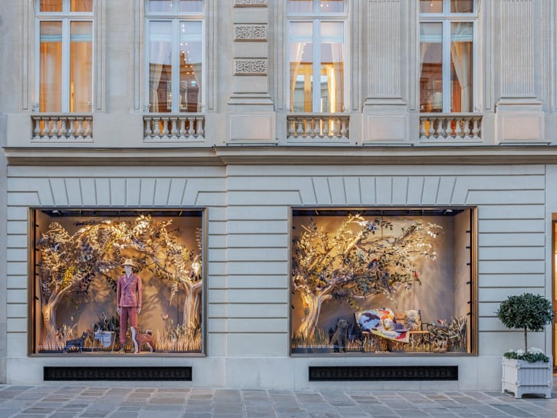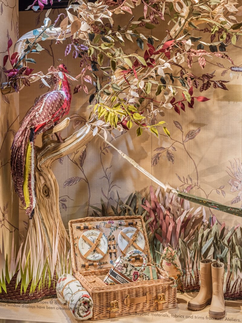 “What better way to mark the first anniversary of 30 Montaigne’s reinvention than with a fairy-tale window display elaborated from upcycled fabrics and materials from the Dior Ateliers?”