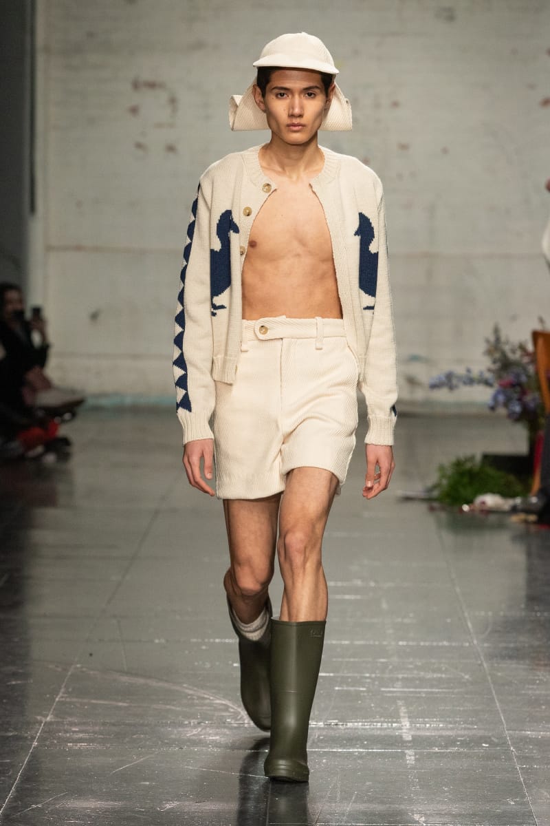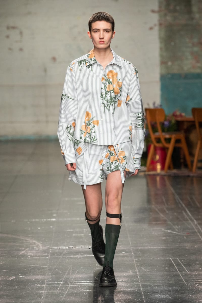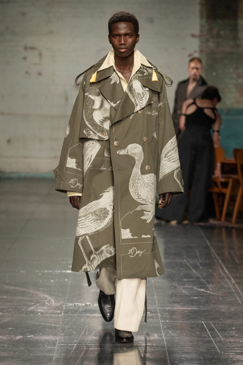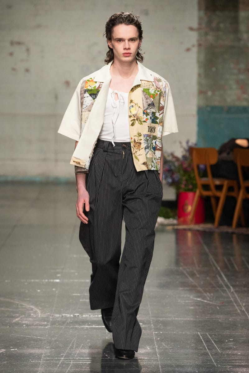 “As I worked on the collection, I started writing my own narrative. For each look, I gave it a character. It jumps from different periods and reference points, merging with my ideas of theatre and movement, to build my own modern-day period drama,” says Steven Stokey Daley.