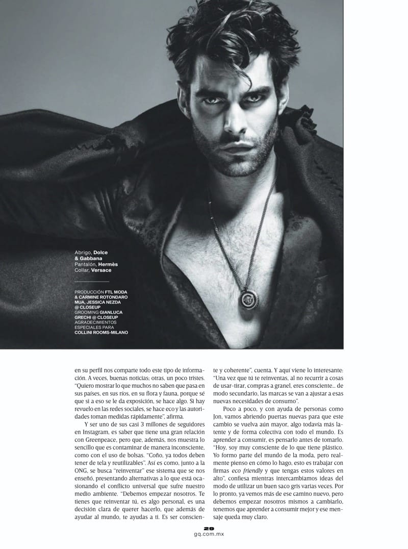 “The top model not only appears in the magazine but poses for the cover. Sitting for a portrait, Jon delivers one of his iconic gazes as he links up with photographer Alessio Albi.