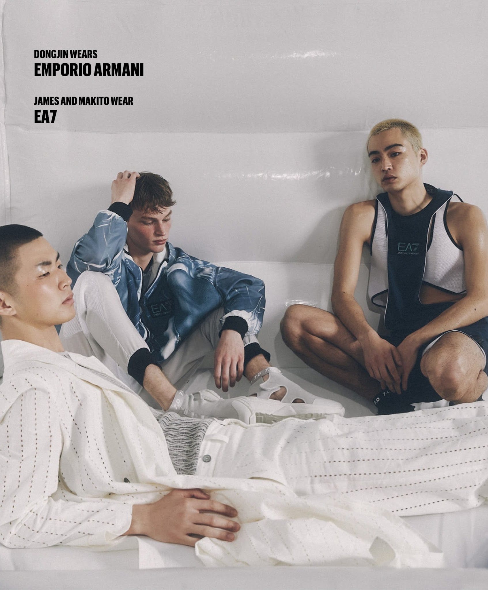INYIM Media Fashion Threesome: Feat Dongjin Shin, James Fairweather & Makito Uchida In “Kings Of The Castle” Lensed By Dean Ryan McDaid For Attitude Magazine.