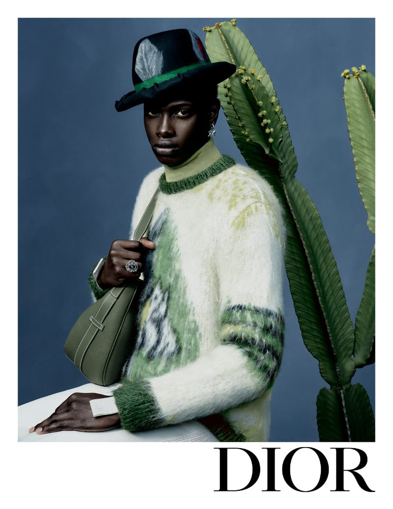 “Raphael Pavarotti really gave a contemporary twist to this Dior men’s Winter 2021-2022 campaign. The photographs are like paintings, with a color palette inspired by Peter Doig’s universe. It’s a mix between modernity and poetic melancholy.” – Kim Jones