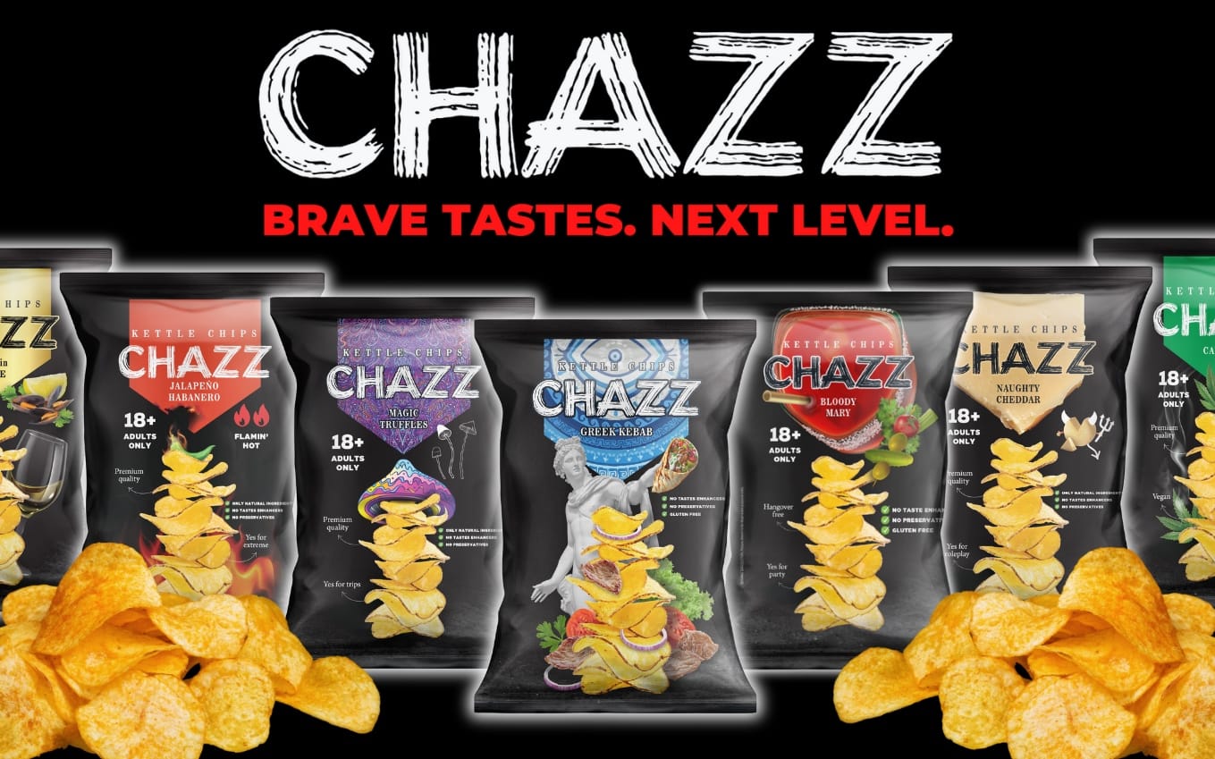 “Lithuanian snack company Chazz has just released a new collection of penis- and vagina-flavored potato chips. Yes, really. From the website: