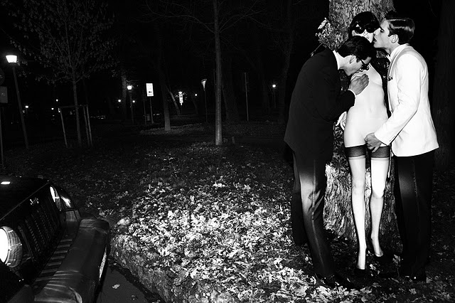 Photographer Giampaolo Sgura and stylist Miguel Arnau collaborated on this tribute to iconic photographer Helmut Newton, published in the latest issue of GQ Spain. The story La Ironía del Glamour (The Irony of Glamour) features Simone Bredariol and Alfred Kovac. Courtesy of – hommemodel.blogspot.com