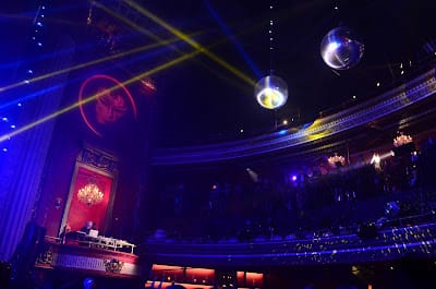 Back on the dance-floor the drinks flowed and the music was perfectly tuned as classics like Machine’s 1979 anthem “There Before the Grace of God, Go I” pulsated, a mega mix of Mighty Ryeders – “Evil Vibrations” vs. Chicago’s – “Saturday in the Park” vs De La Soul – “A Roller Skating Jam Named Saturdays” kept the energy warm and fun until suddenly the venue went dark and sparkles of light emerged from a opening in the stage curtains as Dita Von Teese was about to flip the record and shut it down.