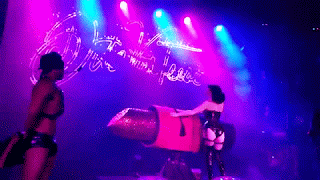 The Burlesque Queen who we only had the privilege seeing in person at one of her vintage expo sales booths was a totally different creature on stage as she sauntered, gleamed and eluded stage presence and sexuality which is no longer seen in this particular fashion, unless you were here at the Globe. Flanked by two harnessed handsome hunks as the dame opened to her track “Bird of Prey” (Bullion Remix) and began a sensual disrobement as her well dressed fans clamored for a better look at the modern day pin-up until she finally saddled up on a giant mechanical MAC Lipstick shaft and disappeared amongst of shower of sparkles, silver streamers and flashes. Dita Von Teese is a Queen.