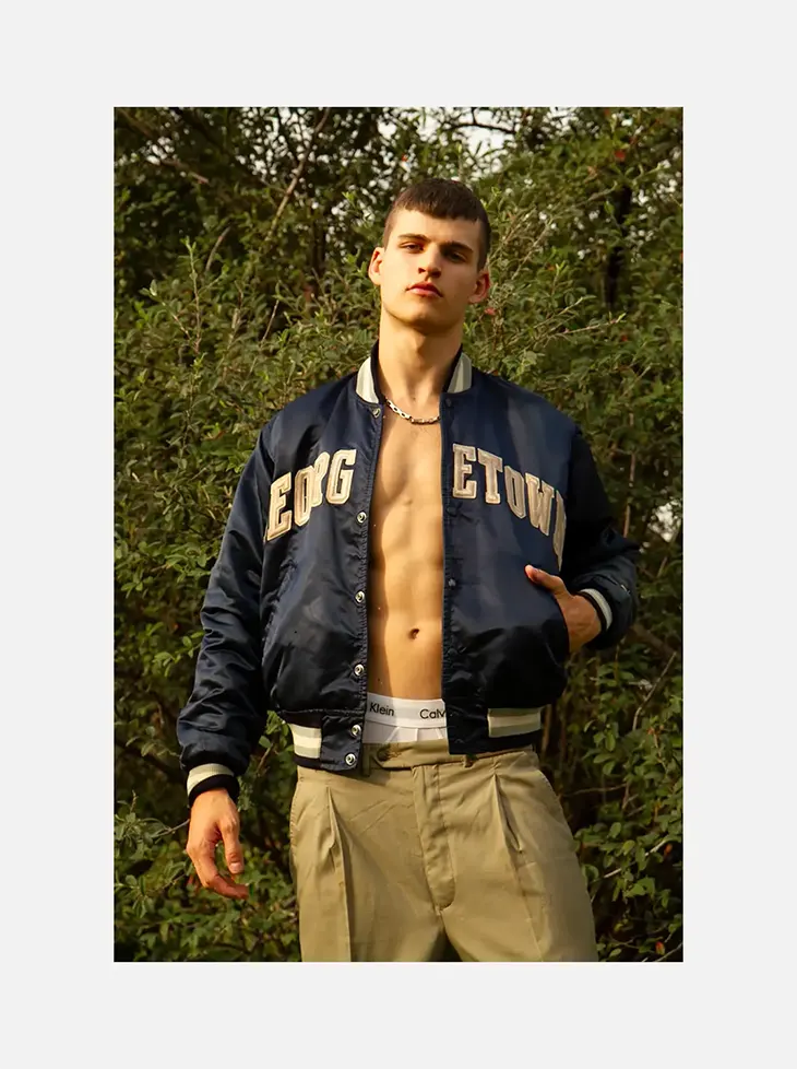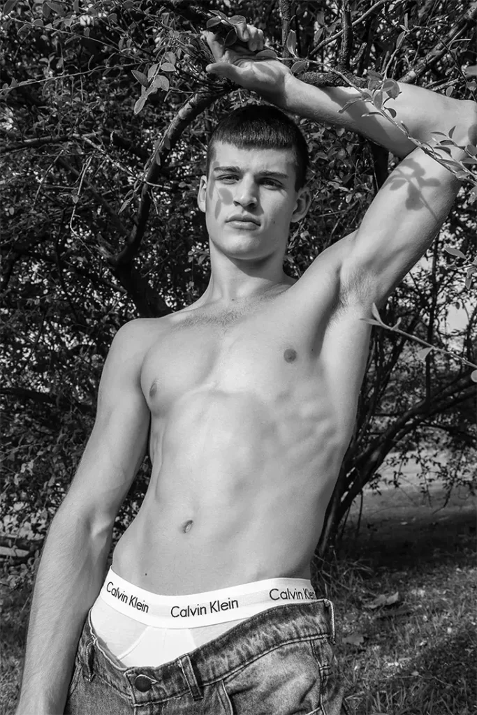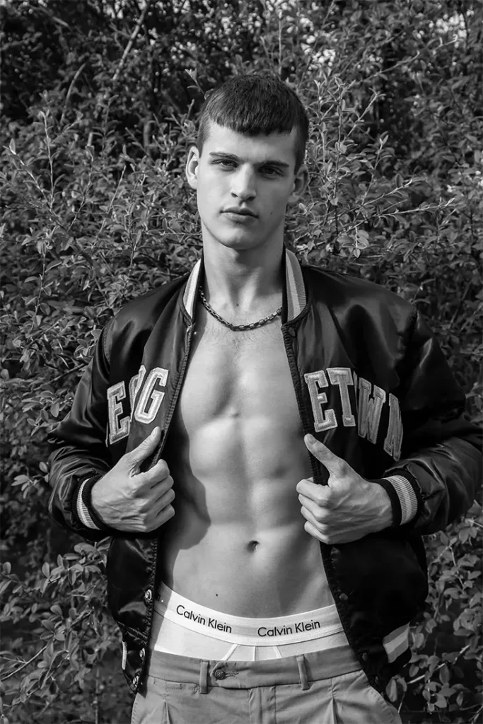 This shoot is all about crisp angles, youthful energy, and editorial finesse. Alex Joos brings a fresh vibe that’s both magnetic and versatile—whether it’s brooding close-ups or relaxed frames, each shot tells a story. The styling is clean, the mood is sharp, and the appeal? Off the charts.