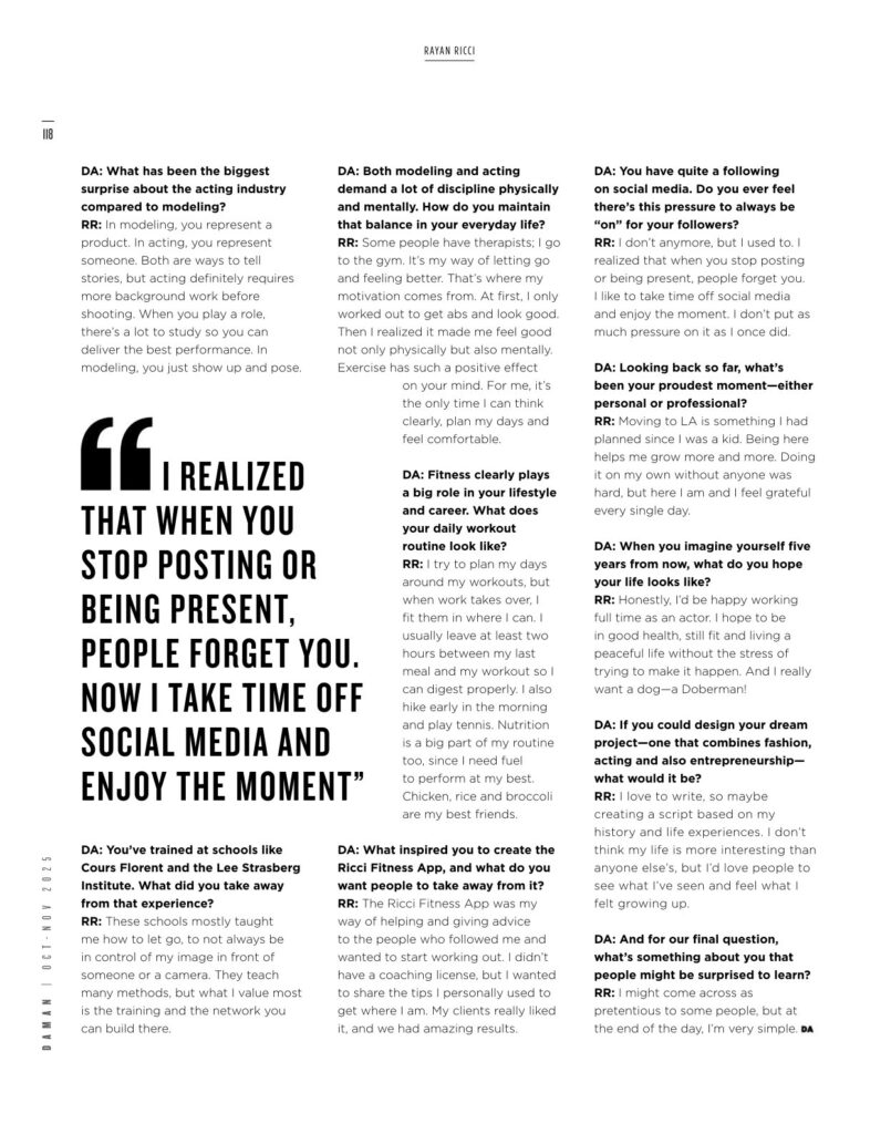 The spread leans into stripped-back elegance: soft tailoring, undone textures, and a youthful gaze that feels both polished and raw. (DaMan’s November/December 2025 issue highlights rising international talent, with Fast’s feature anchoring the men’s fashion section.)