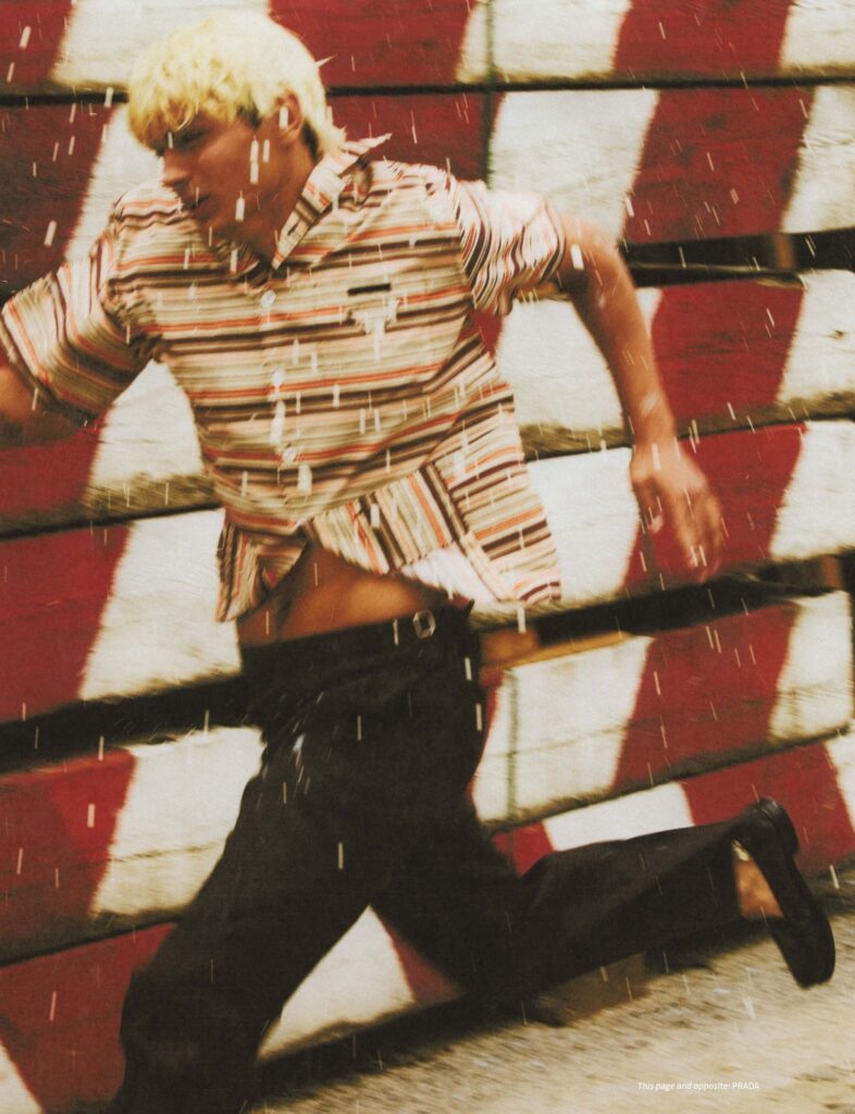 Entitled “Prowl,” the editorial — dreamed up by Christopher Campbell — reveals Colvin’s kinetic charisma and boyish edge in every frame. It’s part cheeky, part cool, and fully expressive.