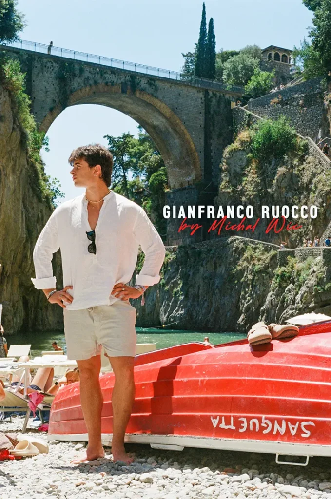 Captured by the lens of Michal Wic, the story introduces Gianfranco Ruocco, the latest fresh face making waves in menswear. With his smoldering gaze and classically Mediterranean features, Gianfranco channels youthful nostalgia and quiet rebellion—marking him as one to watch.
