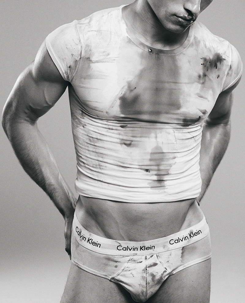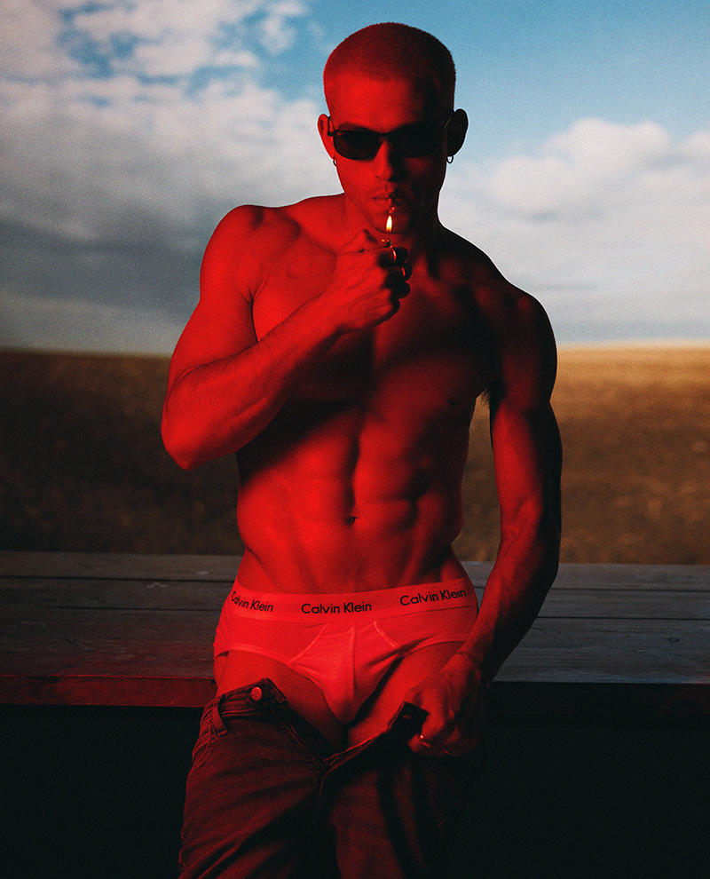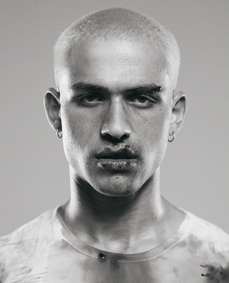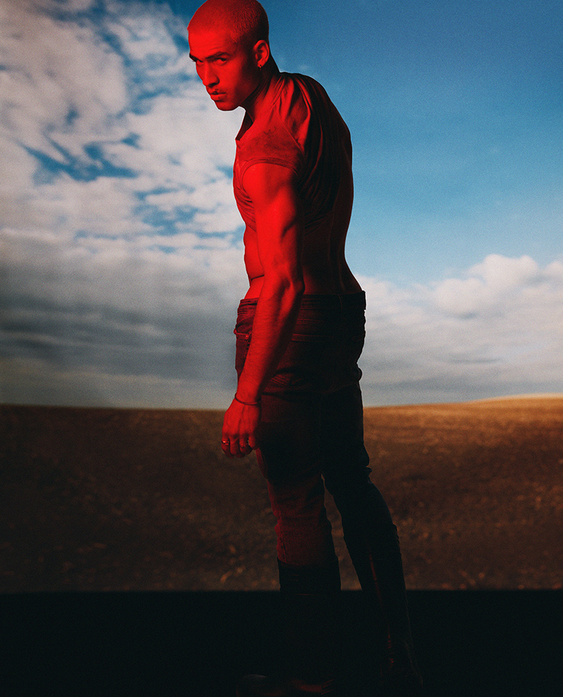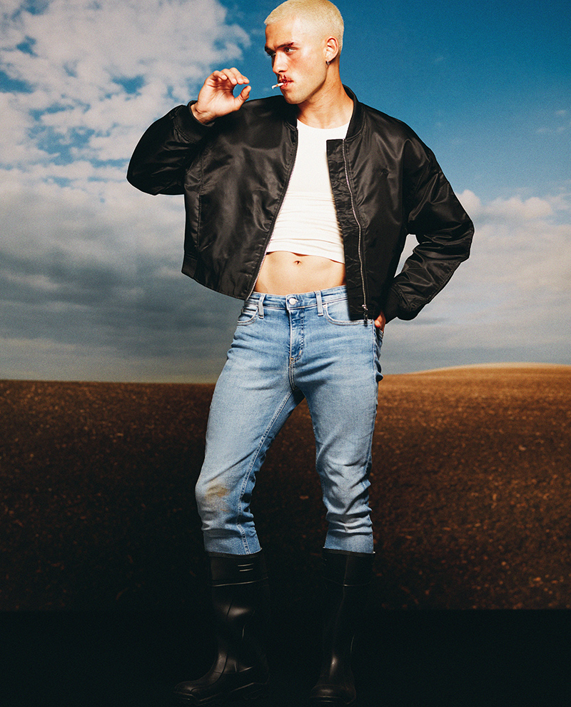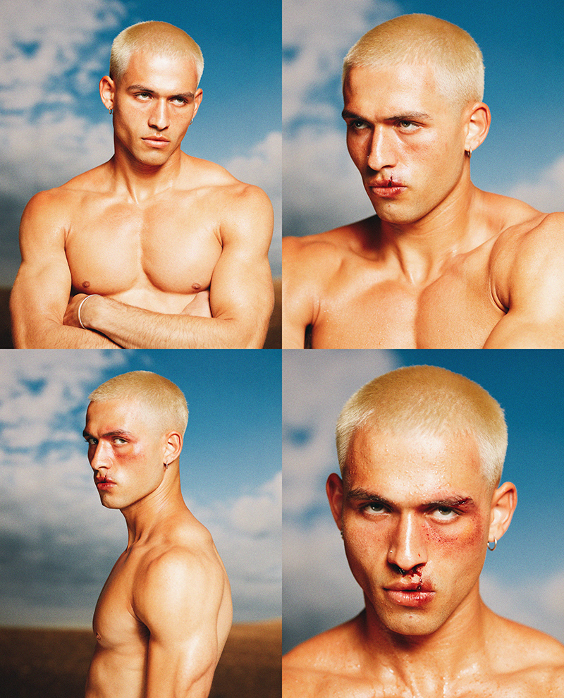 The shoot channels a grungy but dangerously beautiful aesthetic that highlights Lucas’s natural prominence and editorial versatility.