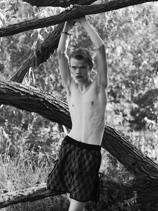 Scope out the cutie in all his denim-clad and shirtless glory—a blend of boyish charm and editorial edge that’s impossible to ignore.