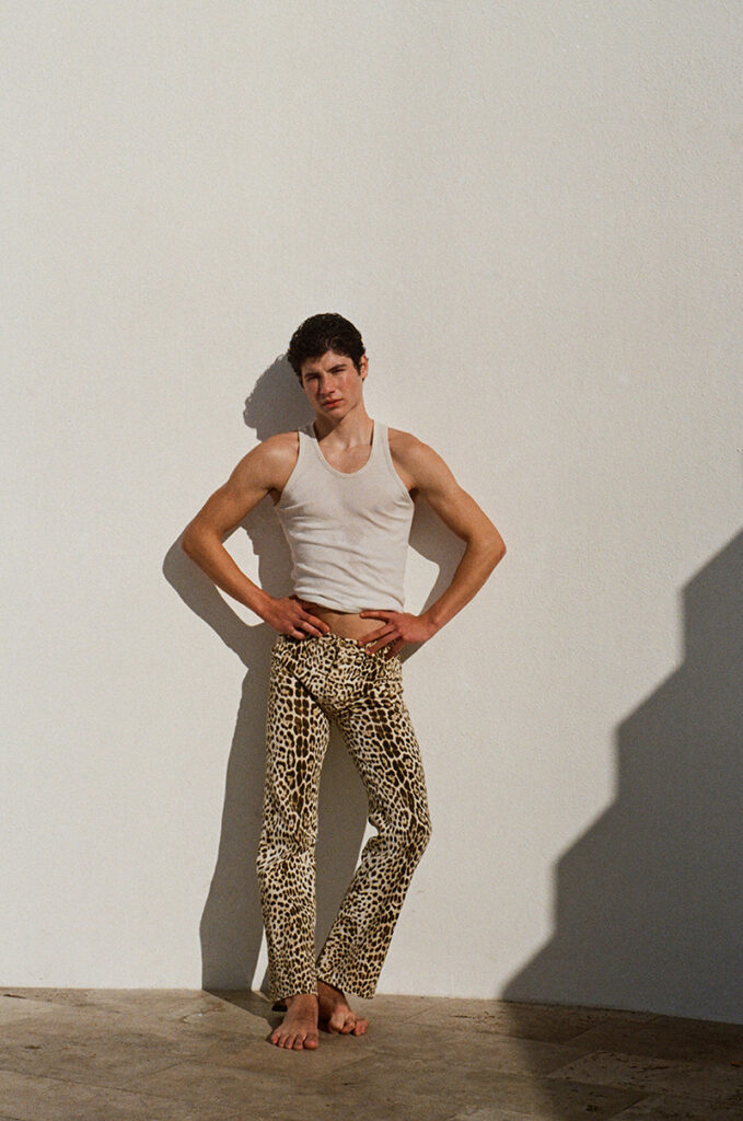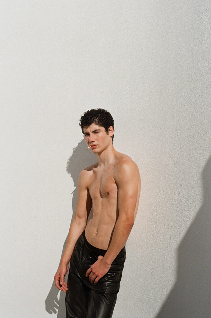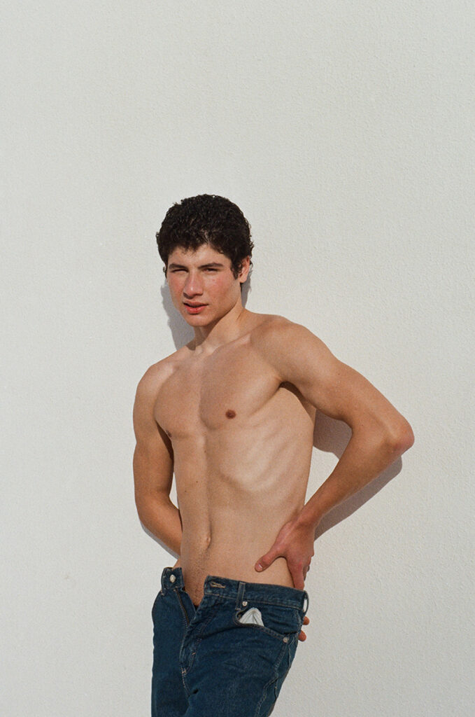 Whether it’s denim, minimal tailoring, or bare skin and bold shadows, Octavio’s presence is magnetic. The shoot captures a balance of softness and edge, with Palacios’ lens highlighting texture, tone, and the kind of gaze that lingers.