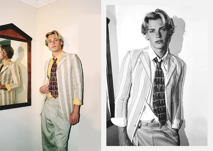 Tanner McCreary, repped by Two Management, stars in MMSCENE PORTRAITS shot by Adam Washington with crisp monochrome styling.