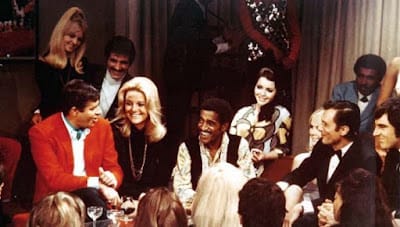 The counter-culture, politics and rock music were the keynotes of Hefner’s second syndicated tube venture, Playboy After Dark, launched in Hollywood in the summer of 1968 after Playboy’s operations moved to California. Although the host still wore a tux (albeit a more dandified one than before) and the setting was a rather tacky-looking nightclub rather than an apartment, it remained his domain, with then-girlfriend Barbi Benton smilingly on his arm and a mellow counter-culture, summer-of-love vibe being shot through by songs like “Born to Be Wild” and serious, concise commentary on censorship (a major Hefner preoccupation), the Democratic convention in Chicago, Vietnam (guest Joey Bishop, of all people, had just returned from there), ecology and race. Stating that Hefner “lets me say all the things I wanted to say,” football and film star Jim Brown says that the two things America’s black population needed to concentrate on over the next 20 years were “expertise and finance.”