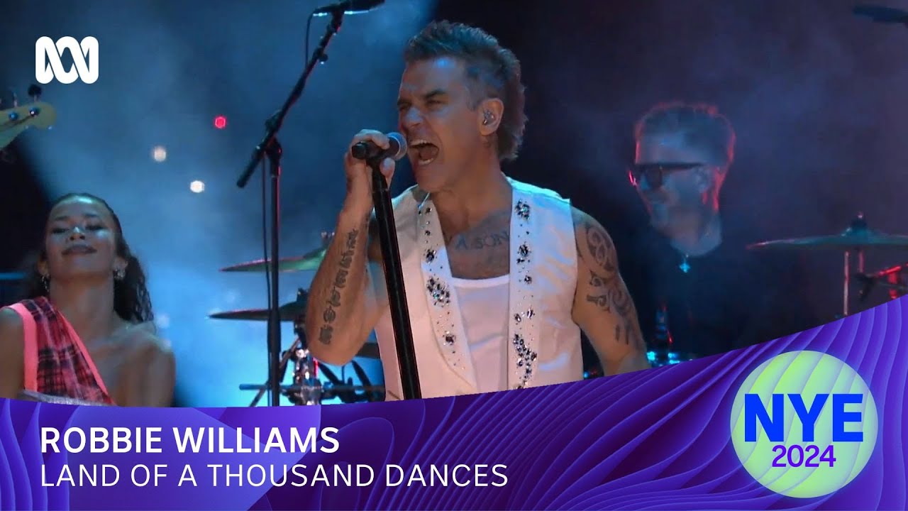 Robbie Williams goes retro throwback circa 1966 covering Wilson Pickett’s “Land of a Thousand Dances” live at the Sydney Opera House for the ABC New Year’s Eve 2024 Concert.