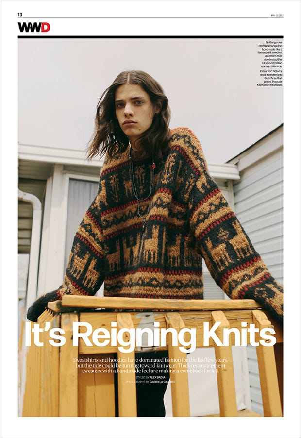 “Top model Erin Mommsen teams up with fashion photographer Gabriela Celeste for It’s Reigning Knits story coming from the pages of WWD Magazine. in charge of styling was Alex Badia, with grooming from Amanda Wilson represented by Opus beauty.” – Malemodelscene.net