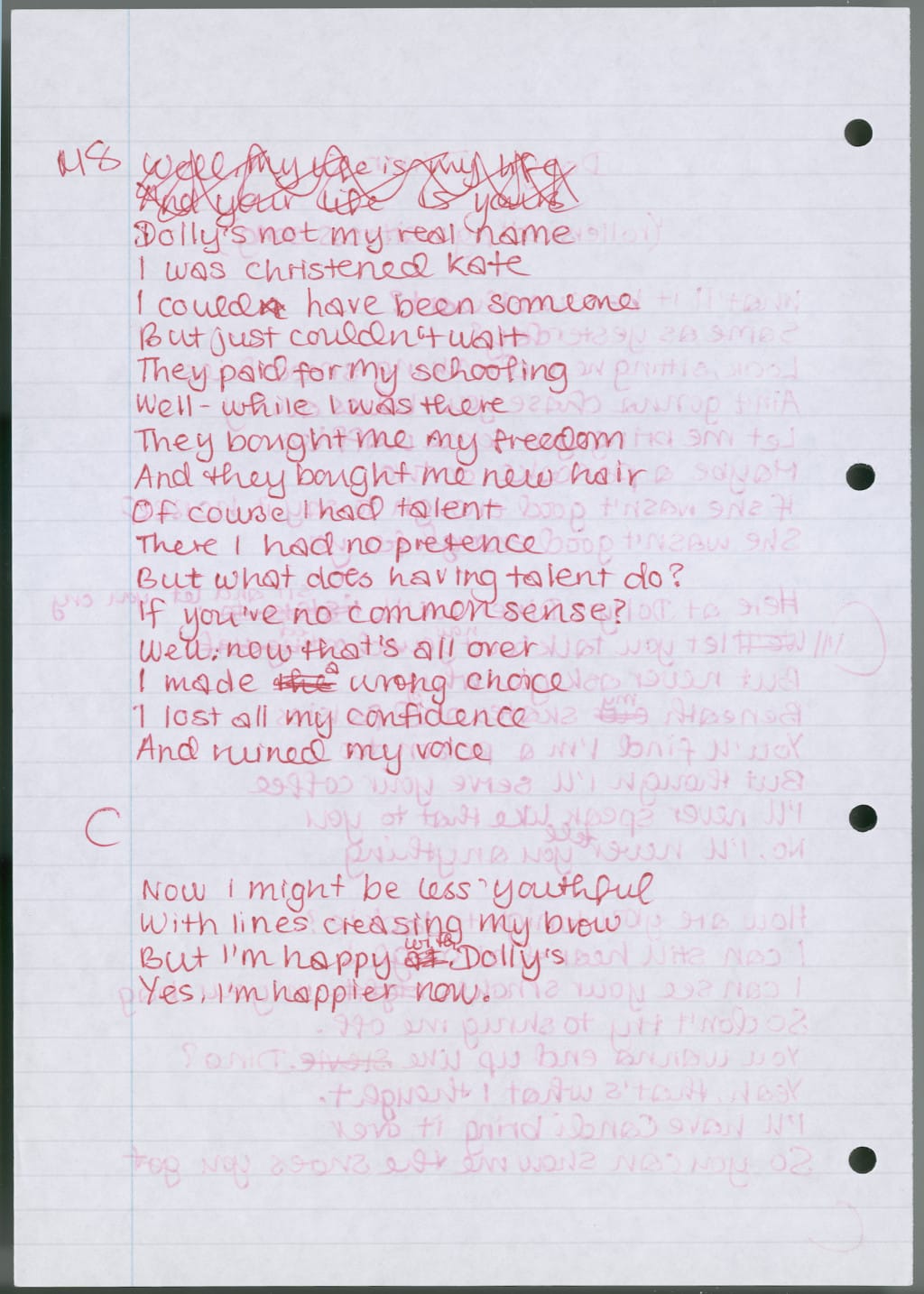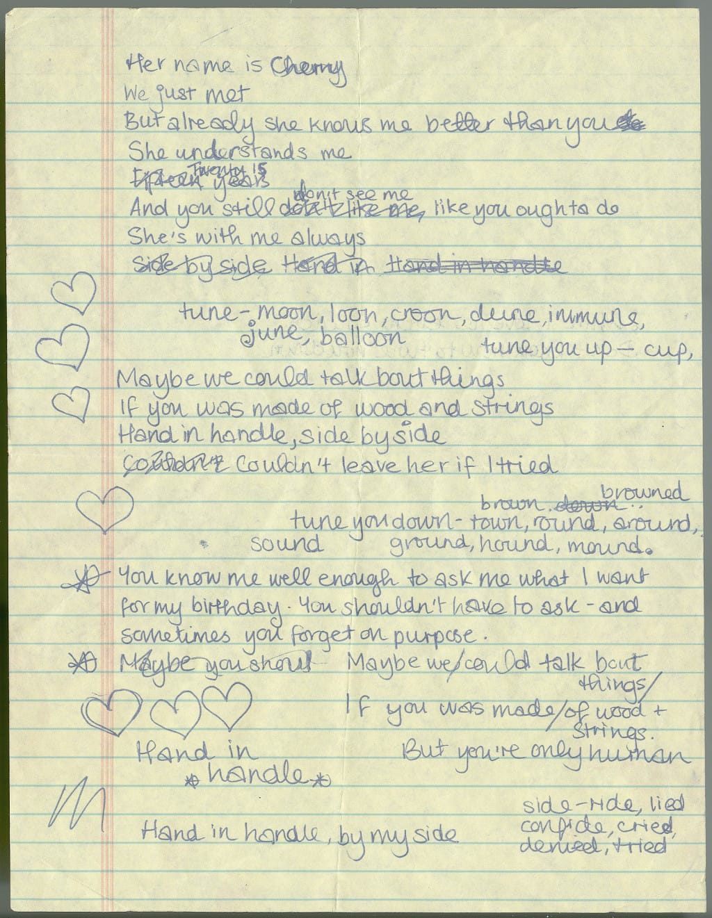 Winehouse’s handwritten lyrics for the song off 2003’s Frank, a track that personifies her guitar