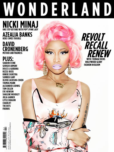 “Nicki Minaj Wears Prada on Wonderland: For the mag’s Feb/March issue, a cotton-candy coiffed Nicki Minaj proves that Prada is for more than just basic bitches. Check out Wonderland‘s latest cover, which features Ms. Minaj rocking totally natural lashes and what looks like a printed version of the Spring ’12 bodysuit that’s been taking over recent editorials.” – Fashionista.com – via designscene.net