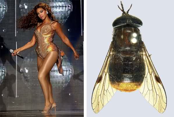 “Bootylicious Fly Named After Beyonce: Researchers have dubbed a previously unnamed species of horse fly species the ‘Scaptia (Plinthina) beyonceae fly,’ in honor of Blue Ivy’s mother (aka Beyonce). The rare yet pesty fly, which is native to Australia, has a “spectacular” golden “booty,” making it the “all-time diva of flies.” Well we always have thought B was pretty fly…” – Fashionista.com – via ohnotheydidnt.livejournal.com