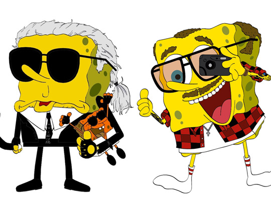 “SpongeKarl SquarePants: Check out Karl Lagerfeld, Terry Richardson, Coco Chanel, and Marc Jacobs (who already has a SpongeBob tattoo) as the underwater, pineapple-dwelling kitchen utensil himself. Just go with it.” – Fashionista.com – via highsnobiety.com