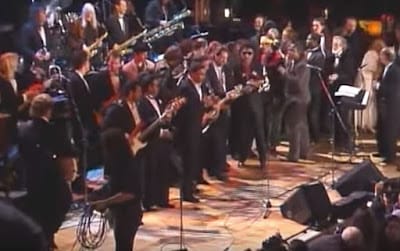 The third annual Rock and Roll Hall of Fame ceremony was epic, to say the least. The Beatles, Beach Boys, Bob Dylan, and the Drifters were all inductees, so there was quite an audience. While many of the bands put on stellar performances, the highlight of the show ended in a 10-song set jam session.