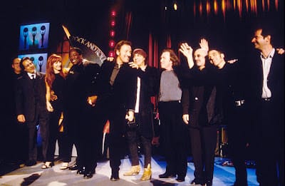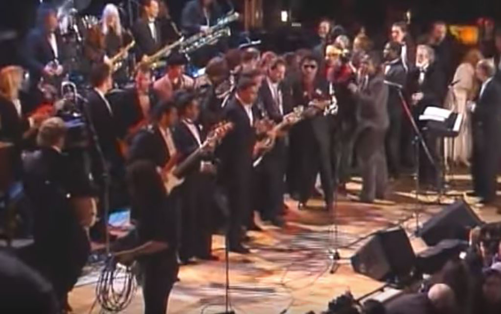 At the 1999 ceremony, which saw the induction of solo artists Bruce Springsteen, Paul McCartney, among others, viewers got quite the treat. The show seemed to be over after a mega-jam session of Carl Perkins’ “Blue Suede Shoes.”