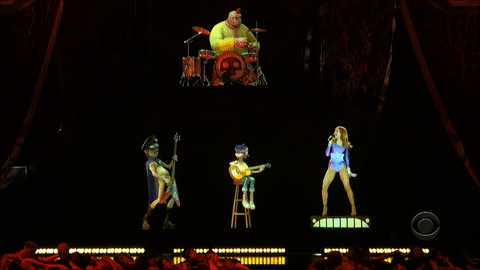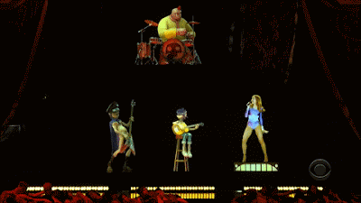 Madonna opened the show with an imaginative sequence in which she interacted with the animated cartoon band Gorillaz. The spot, which marked the first use of hologram on TV, fused Madonna’s “Hung Up” and Gorillaz’s “Feel Good Inc.,” a record of the year contender. This marked the third time the producers turned to Madonna for an opening number, a sign of her broad appeal and strong theatrical instincts.