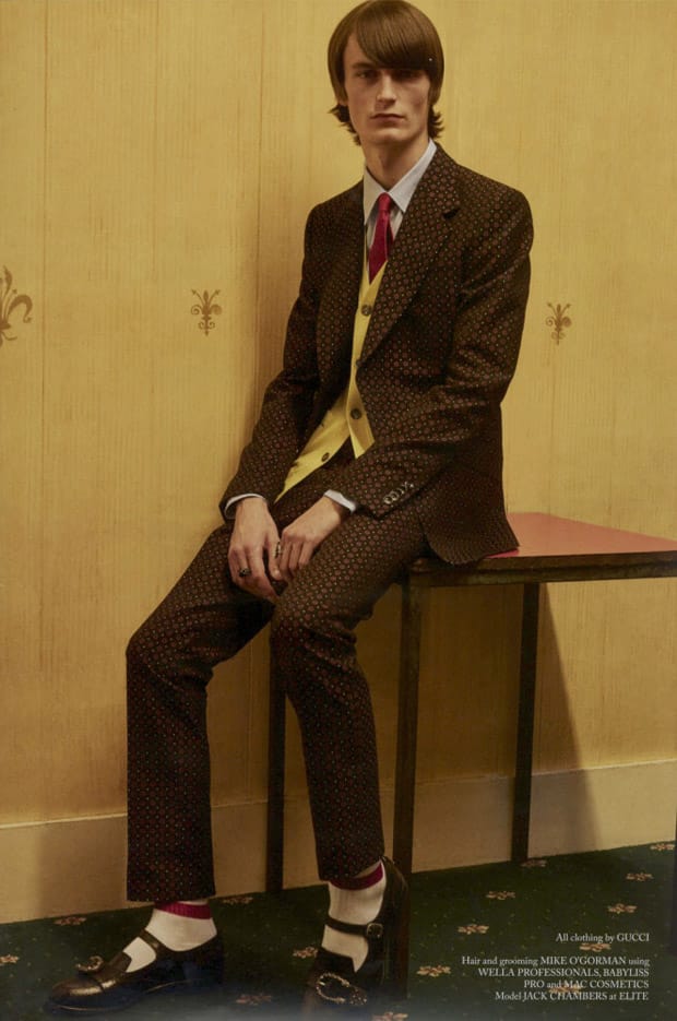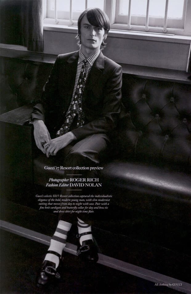 “British model Jack Chambers stars in the cover story of Glass Men‘s Winter 2016 edition captured by fashion photographer Roger Rich. In charge of styling was David Nolan, with hair and makeup from Mike O’Gorman. For the session Jack is wearing selected looks from Gucci.” – Malemodelscene.net