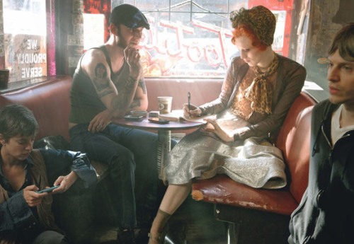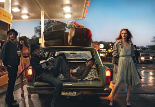 ‘Musicians and real-life couple Jack White & model Karen Elson star in in ‘Frock & Roll’ in the June 2010 issue of American Vogue, photographed by Annie Leibovitz and styled by Grace Coddington.’ – Courtesy of homotography.blogspot.com