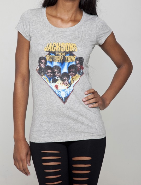 More notably for fans of the King of Pop, and though it has less to do with the Jackson 5, the collection will include exact replicas of the “Thriller” and “Beat It” leather jackets. A press release for the line boasts that the jackets are “produced, down to the detail, in the design of the original jackets.” Rafi Weisman, the original designer of the jackets, was even consulted to create the replicas for the line. The “Thriller” jacket comes in soft red leather with black detailing and and “V” design on the back and the “Beat It” jacket comes in red or white leather with chainmail detailing and diagonal zipper designs. The catch? While the tees will run from between $45-$55, the jackets will cost around $900.”