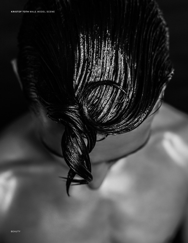“Fashion photographer Kristof Toth creates a striking new exclusive MALE MODEL SCENE beauty series with the promising Jackson Rado from London’s Premier Model Management. In charge of the styling was fashion stylist Boglar Bendik, hair styling handled by hair stylist Laszlo Pasztor, makeup by Makeup Artist Barbara Keseru.
