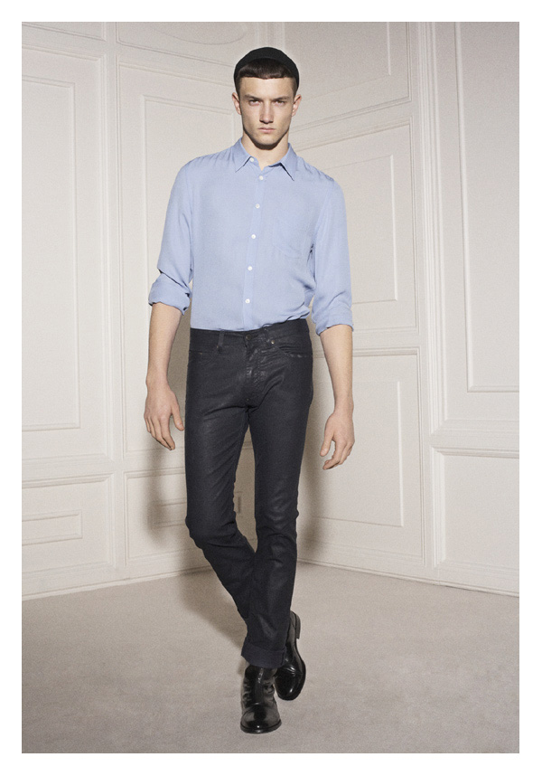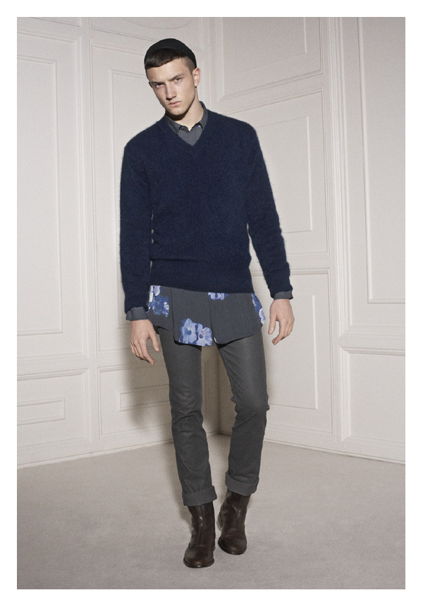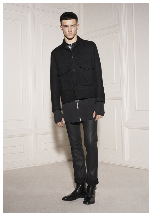 ‘The latest collection from Acne is definitely not your garden-variety. Fusing sci-fi aspirations with a nod to aviation, designer Jonny Johansson looks to dark colors and heavy, but utilitarian outerwear for this season’s focal point. Turning to leather and conservative silhouettes, pants and tops are fitted, while plunging necklines and elongated proportions keep the Acne man at the helm of what’s current.’ – thefashionisto.com