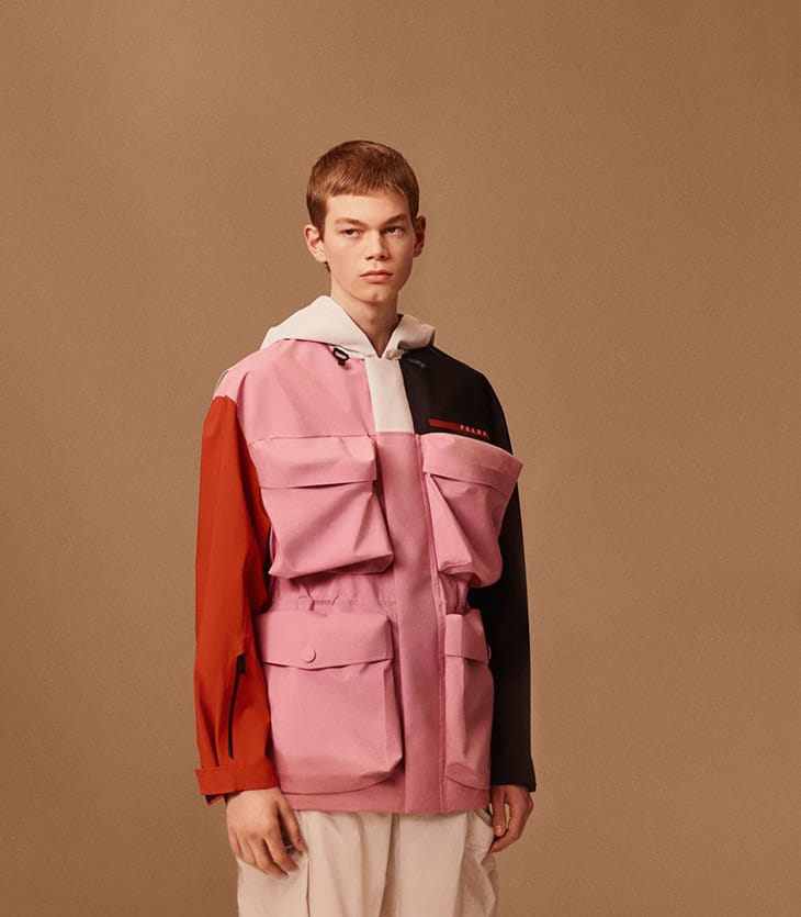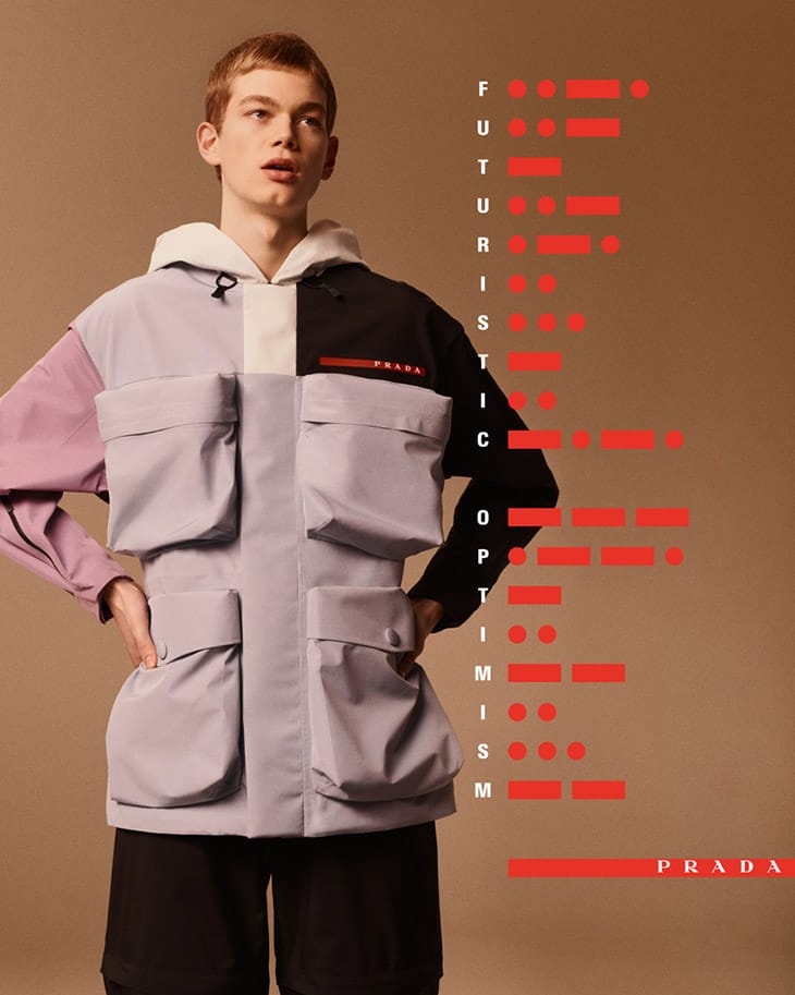 “Models Jacob Lepp and Jiao Tong team up with fashion photographer Timur Celikdag for Prada Linea Rossa‘s Spring Summer 2020 Morse Code campaign. Styling is work of Max Clark. In charge of creative direction was Ferdinando Verderi. For the advertisement Jacob and Jiao were joined by Julia Merkelbach and Kukua Williams.” – Malemodelscene.net