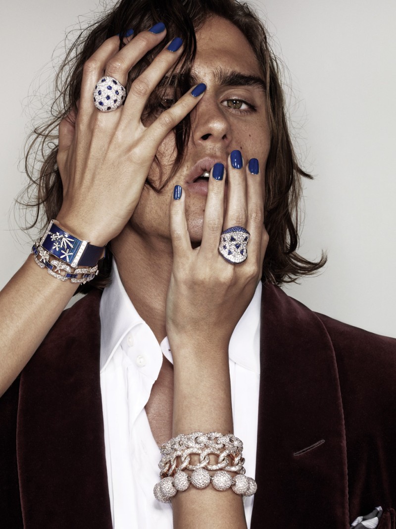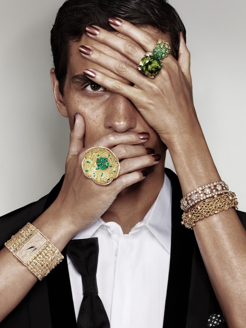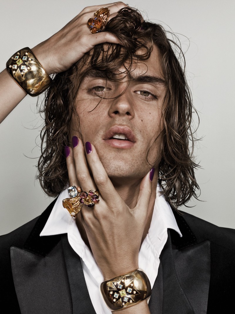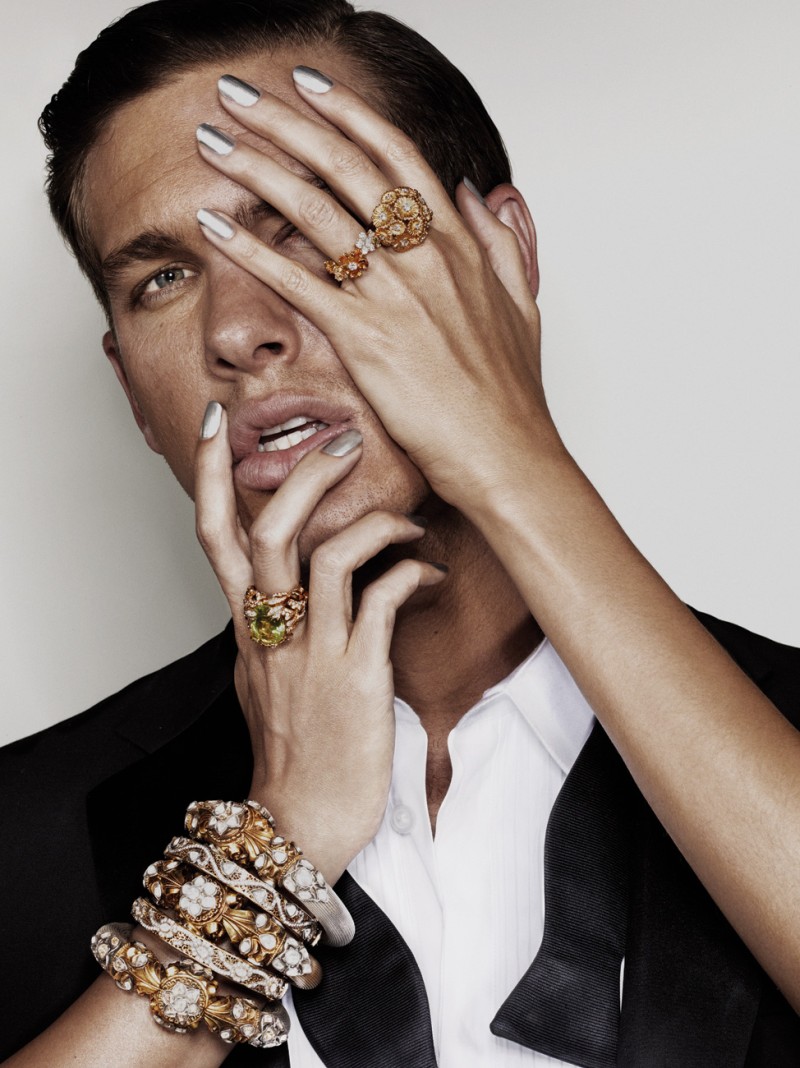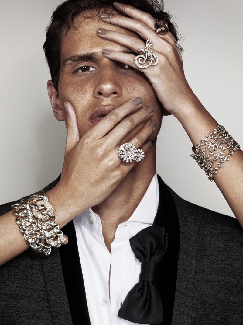 Christina Ambers and Melissa Jackson get their hands on Jacques Naude, Adam Senn, David Smith and Alex Lundqvist for Robbie Fimmano’s most recent Interview story. Juxtaposing womenswear accessories with menswear, formal wear from the likes of Giorgio Armani, Givenchy and Dolce & Gabbana come together for a quirky fashionable outing. – Courtesy of Thefashionisto.com