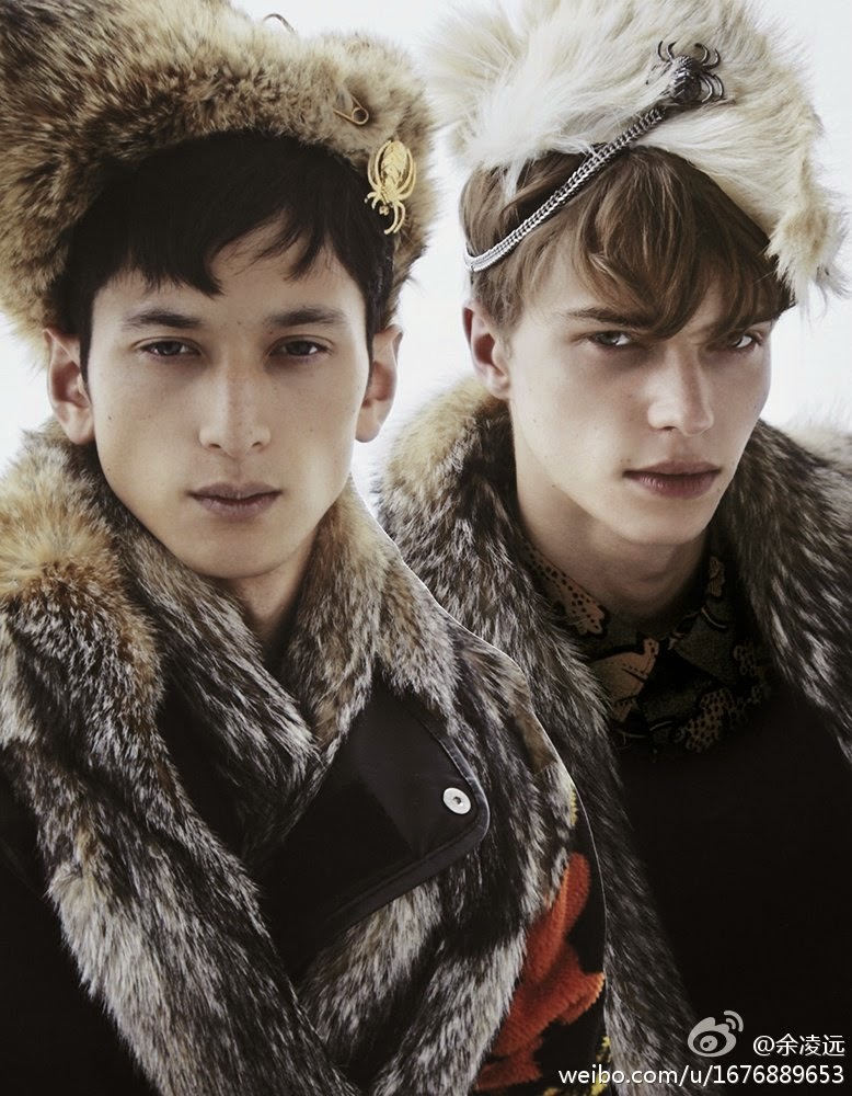 Photographer Damien Blottiere contributes another cover to FHM Collection China’s fall-winter 2014 issue. Clad in furs, models Jake Love and Hideki Asahina are infectiously charming in luxury fashions pulled together by stylist Shun Watanabe. Courtesy of – thefashionisto.com