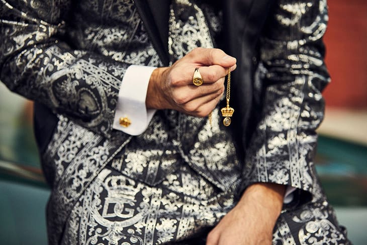 “The handsome Jake Sanderson teams up with fashion photographer Allie Holloway for Dolce & Gabbana Jewelry & Accessories 2020 lookbook. In charge of hair styling was Cameron Rains, with makeup from beauty artist Georgi Sandev, and manicure by nail technician Tracylee. Production by Hyperion LA.” – Malemodelscene.net