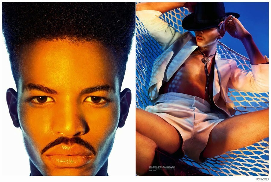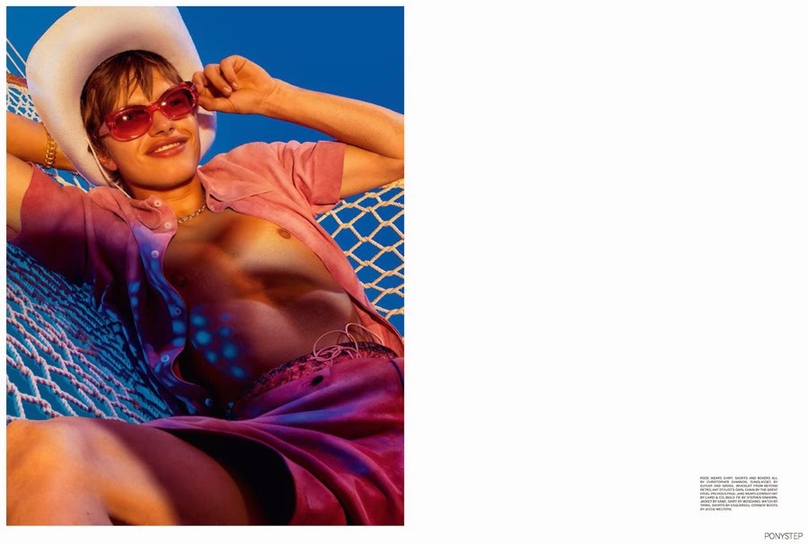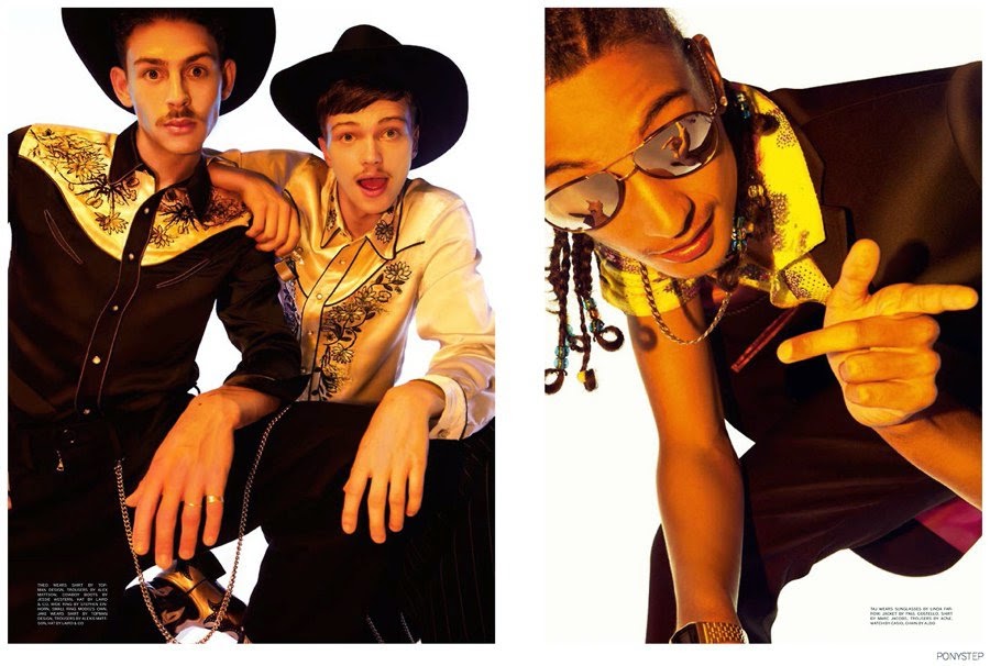 “Well Hung-Models Jake Love, Taj, Theo De Gueltzl, Glen Abrantes and Rody De Groot star in a playful fashion editorial for the sixth issue of Ponystep. Playboys for the day, the lot charm in photos by Meinke Klein. Outfitted by stylist Phoebe Arnold, a western theme goes campy with fun new takes on the iconic motif, mixed with a glimmer of Miami.” – TheFashionisto