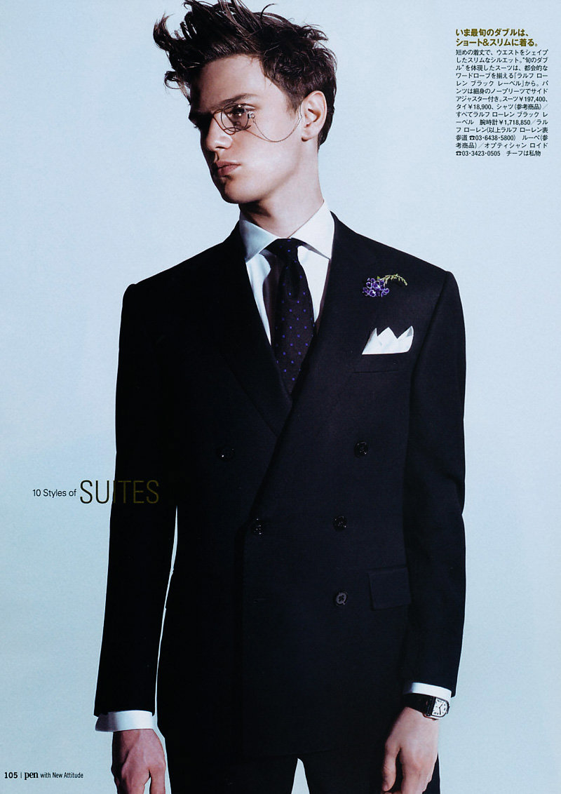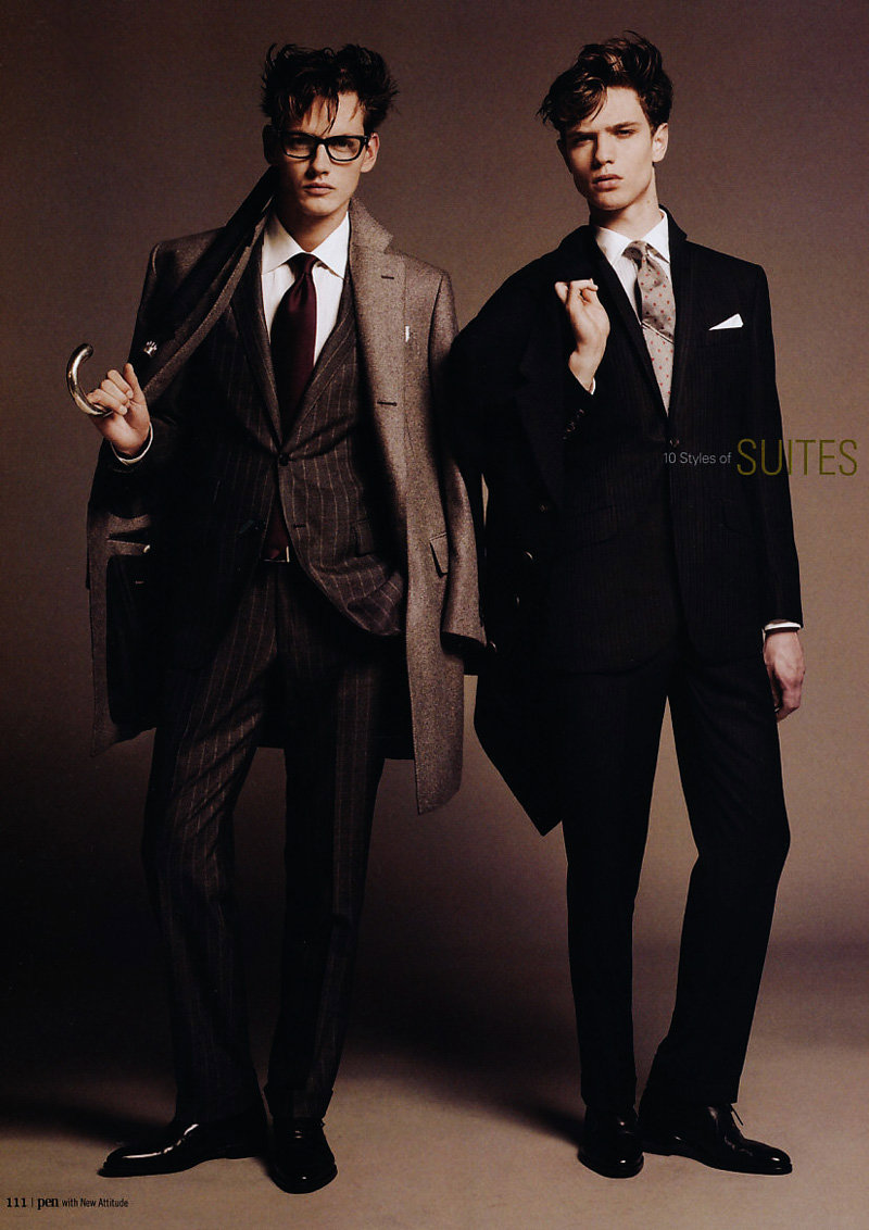 “Jakob Hybholt and Loammi Goetghebeur make a dashing appearance in the December 1, 2010 issue of Pen. Photographed by Shiro Katagiri and tackling a suiting story styled by Toshifumi Ishizeki, the duo make for a dapper pairing.” -Fashionisto